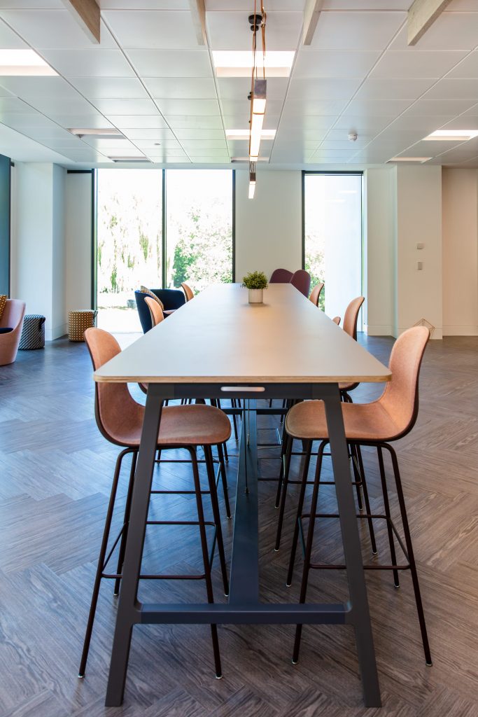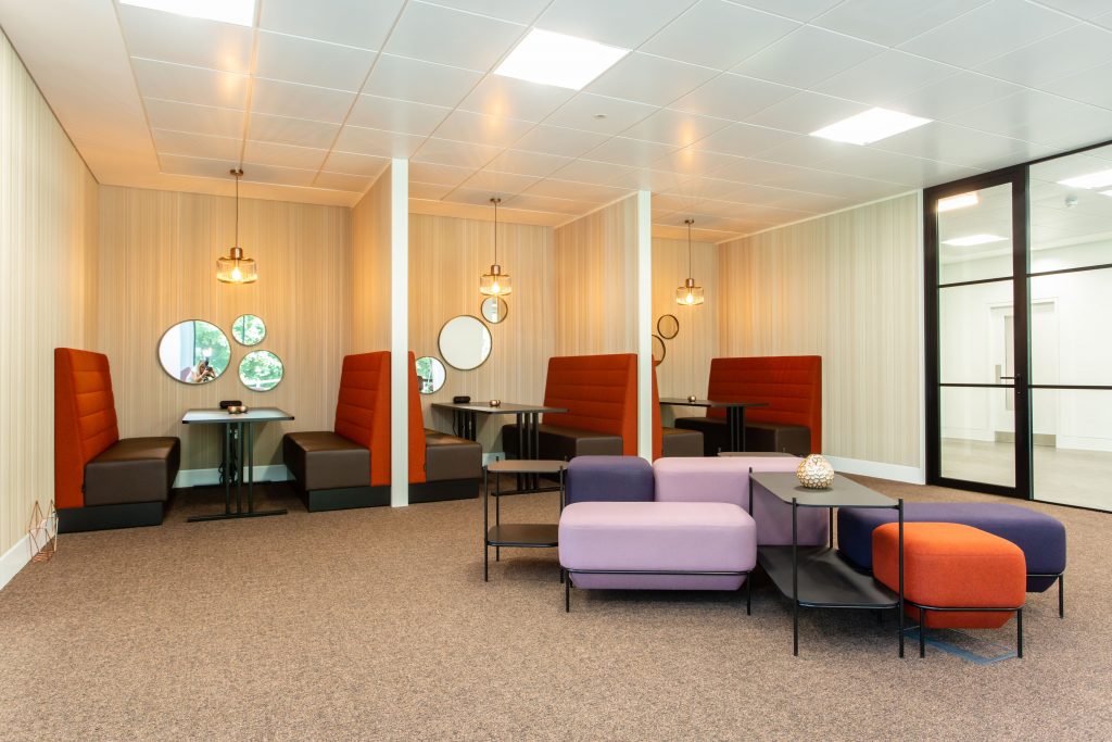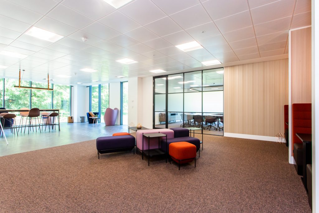 The second floor area has been designed and laid out to accommodate 147 employees with state of the art LED lighting and a majestic steel ribbon staircase. This newly refurbished area was designed to boast as much natural daylight as possible to bring an air of scenic openness to the interior. With cutting edge technology such as the 1GB fibre connection, 24/7 gated access and stylish, modern, bright interiors offering views of the surrounding countryside, this office environment will undoubtedly enhance productivity and employee satisfaction.